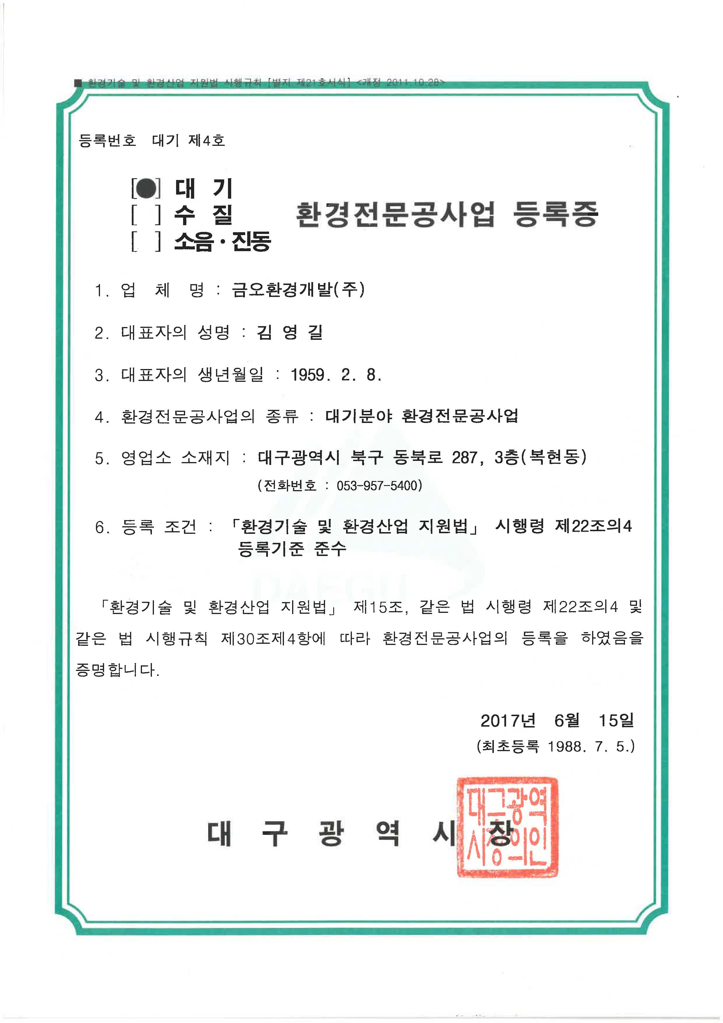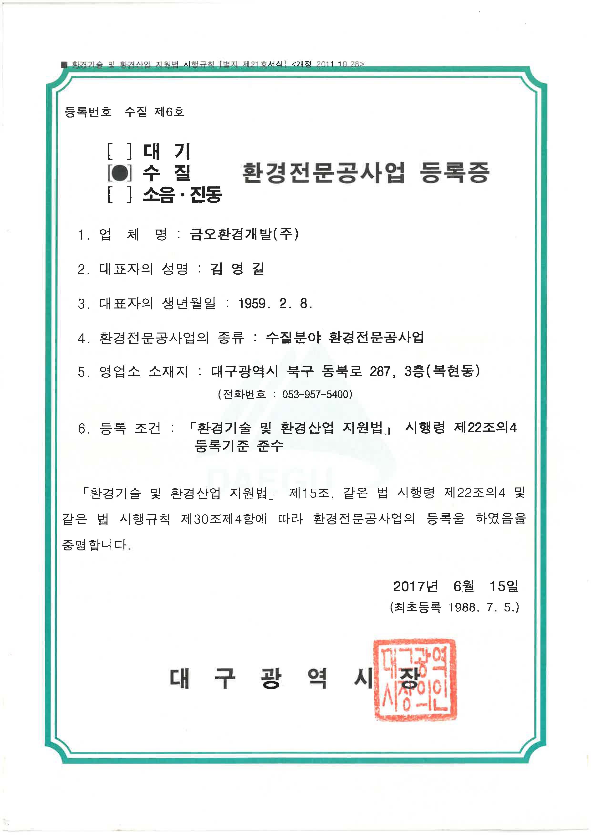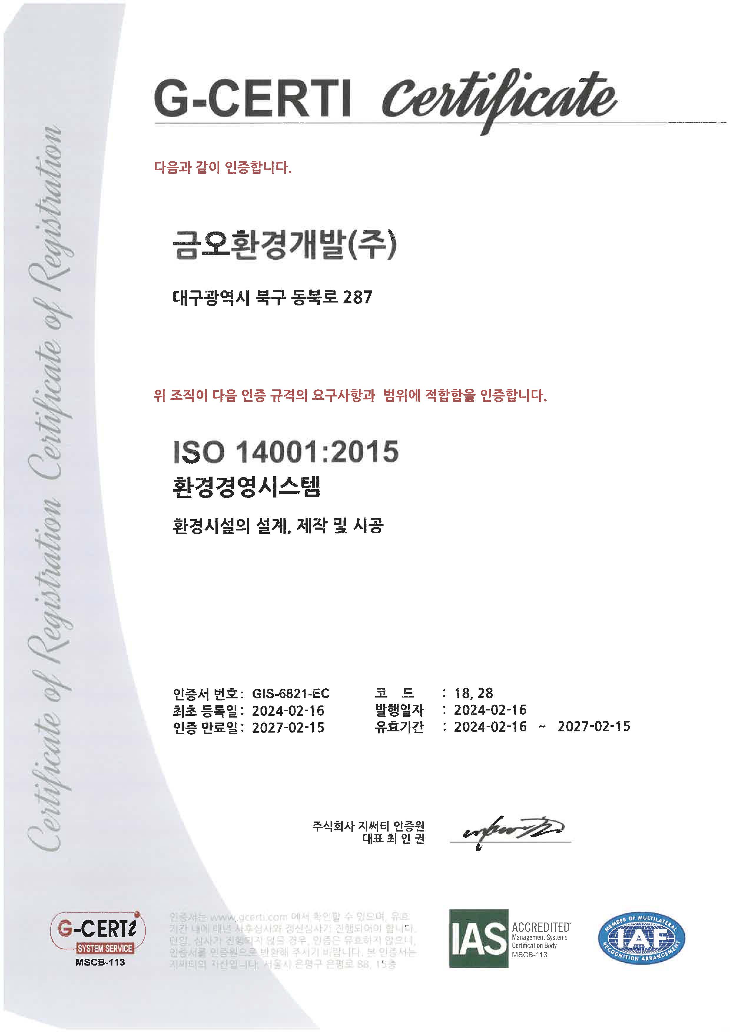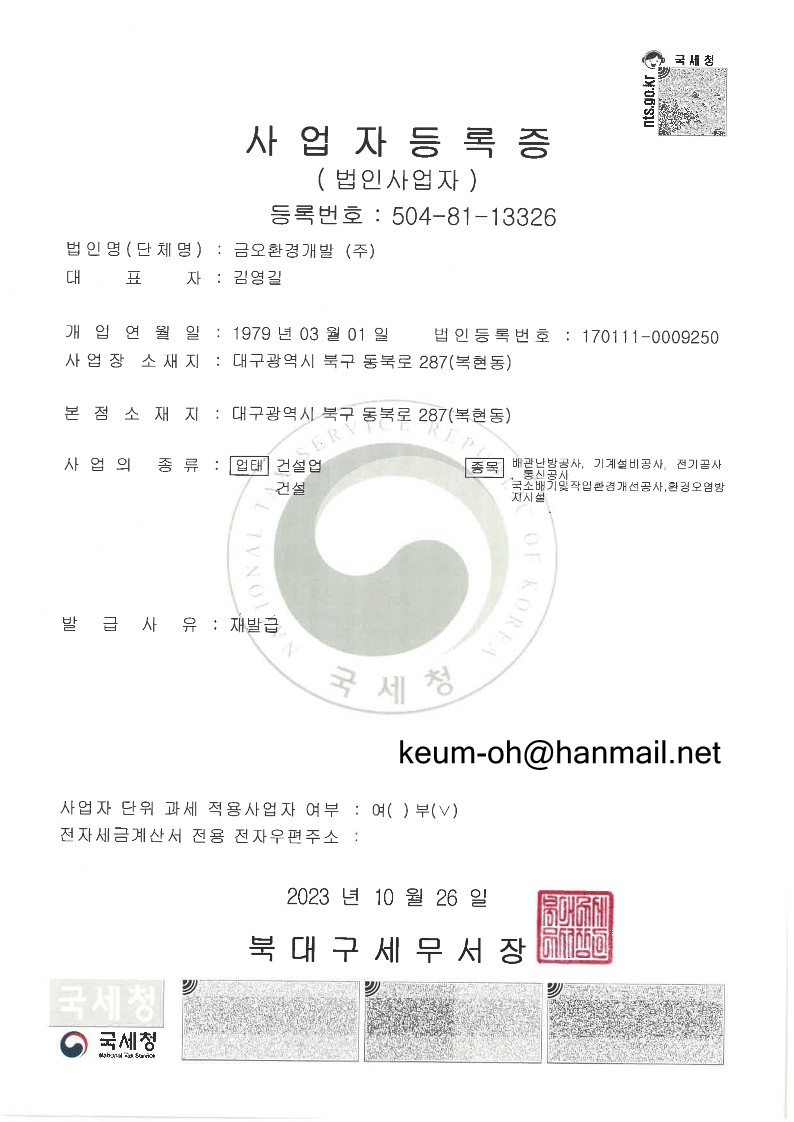환경오염 방지시설 전문 기업 금오환경개발(주)